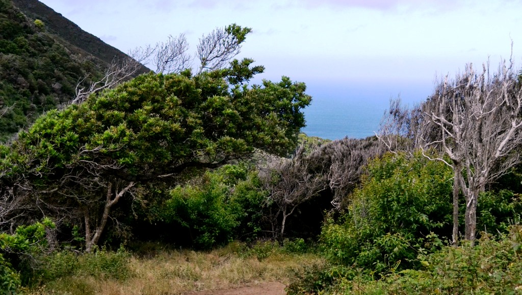 Aquí la caminata es un regalo que se hace a los sentidos, los bosques y sus habitantes dialogan en un sonido que mezcla hojas, pájaros, insectos, agua y un largo etcétera; los colores y muchos tonos de verde se van sucediendo en el paisaje para el deleite de la mirada, también los azules del mar o del cielo, estas últimas, pintarrajeadas con nubes blancas y otras muchas, de tonalidades grisáceas.